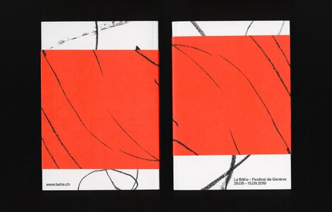 I think it worked out pretty well for them, because they really needed it. The first year was well received, and the following year we worked on movements and rhythm. We asked the dancers featured on the following season’s program to move the way they usually do — except their hands and feet were equipped with felt pens, with pencils, sponges soaked in ink, etc. While dancing they created an enormous amount of traces on the white paper. We used those rhythms to create the designs. We used them on the posters and all the other communication tools. So it was the performers themselves who created the festival’s visual identity. La Bâtie team was extremely supportive, which was great. The more people trust you, the more a project is successful.